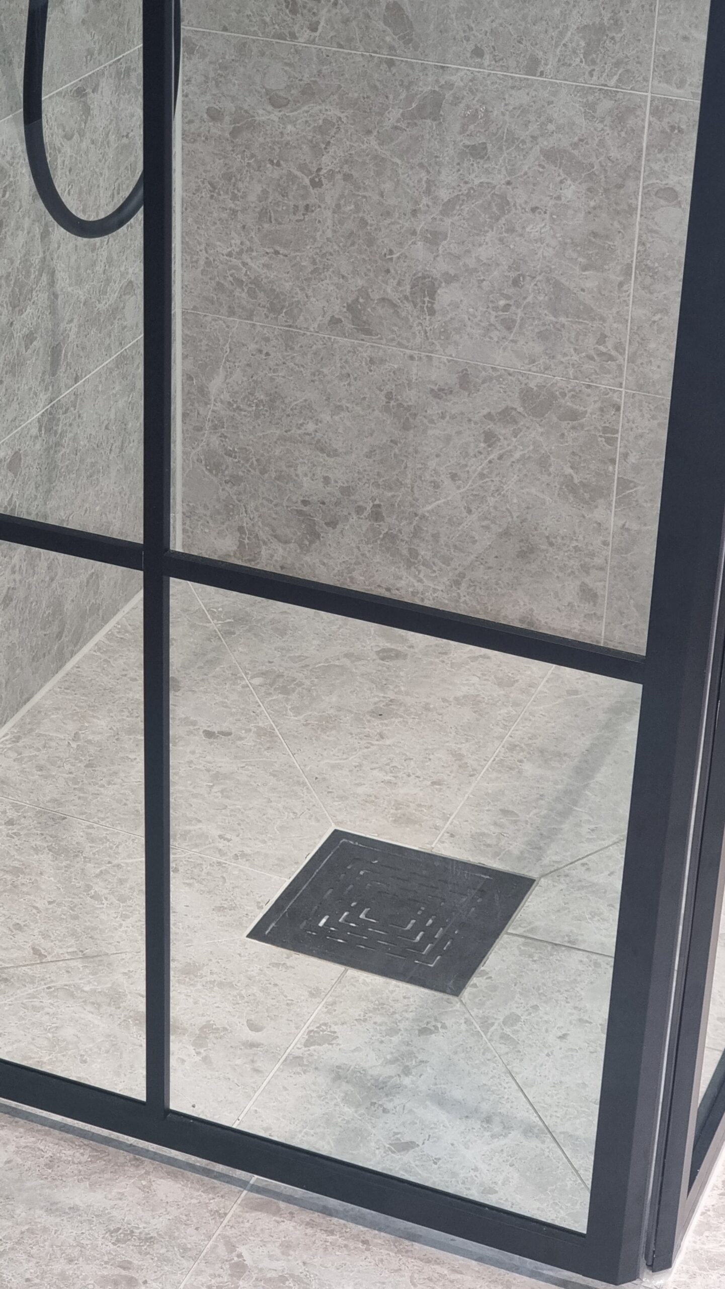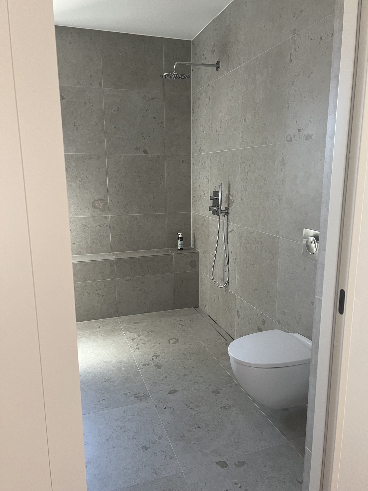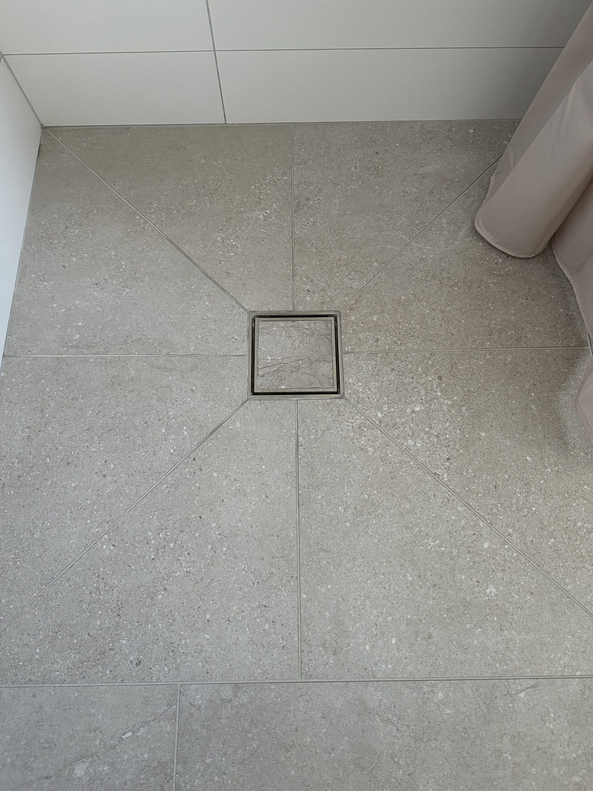 Det går även att använda mindre plattor på golvet i duschen, exempelvis 5x5 cm eller 15x15 cm.